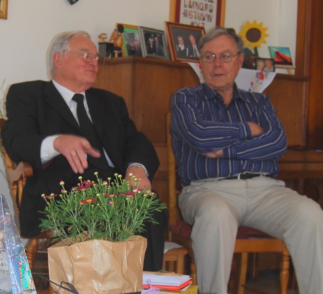 Freitag nachmittag fuhren wir mit Ruth nach Wartburg. Das abgeschlachtete Schaf, das ganz am Spieß gebraten werden sollte, musste am Sonnabend früh an Ort und Stelle sein, damit es rechtzeitig zum Mittagessen gebraten sein konnte. Gerald Scharlach hatte das Braten übernommen. Mit seinem Bruder Manfred hatte er sich solch ein Gestell gebaut. Noch hatte er nur größere Schweinebraten und Hühner damit gar gemacht. Auch für ihn war es das erste Mal, dass er ein ganzes Schaf braten sollte. Ich habe gestaunt, wie er das alles gekonnt hat. Er wusste genau, was zu beachten und zu machen war. Interessant war mir auch ein Thermometer, das an einem längeren Spieß befestigt war. Das er immer einmal ins Fleisch steckte, um die Hitze genau zu registrieren. Er wuste genau, dass die dickeren Fleischstücke ganz innen 77o C sein mussten, damit er sicher sein konnte, dass alles gut durchgebraten und gar war. Es hat dann auch keiner von den vielen Gästen ein rohes Stück Fleisch bekommen. Es ist dann einiges übrig geblieben, denn von den an die hundert Festgästen, waren es nur etwa 70, die gekommen waren. Elisabeth und Manfred hatten zu der gemeinsamen Familienfeier von Wilhelms 50. Geburtstag und Christianes Konfirmation eingeladen.