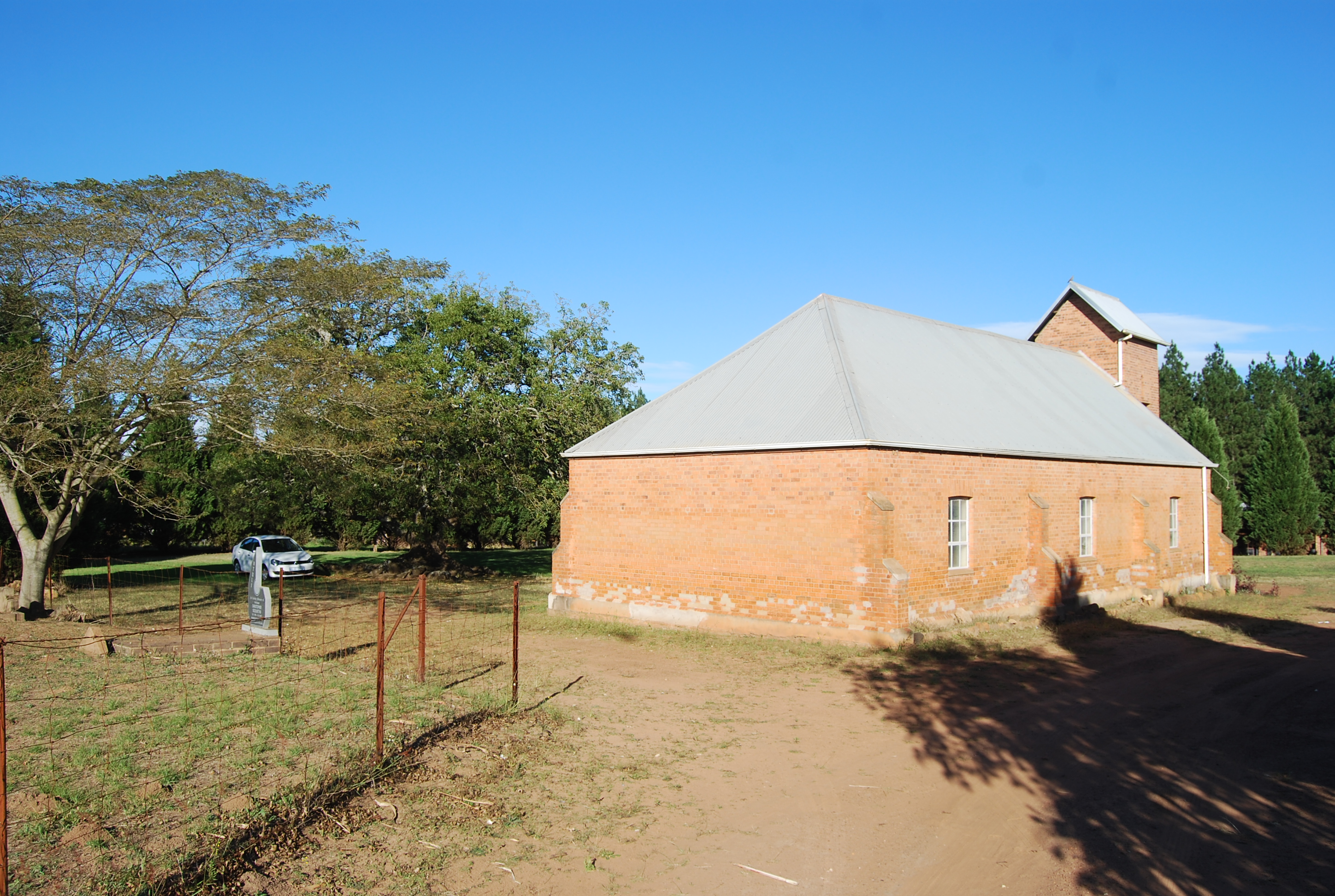 Even early in the morning, when the shadows are still long – there is a lovely blue sky over the Lutheran Church in Pella