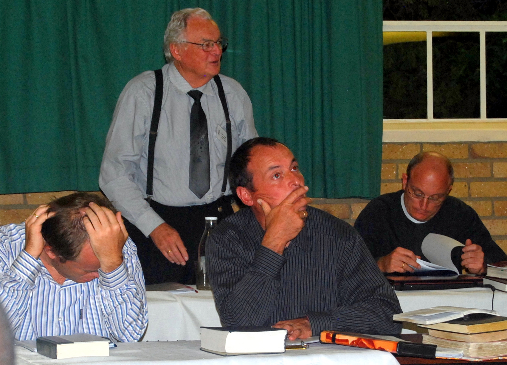 Putting across a serious issues while his sons listen attentively