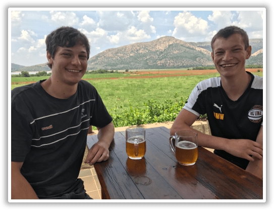 At Brauhaus with his brother