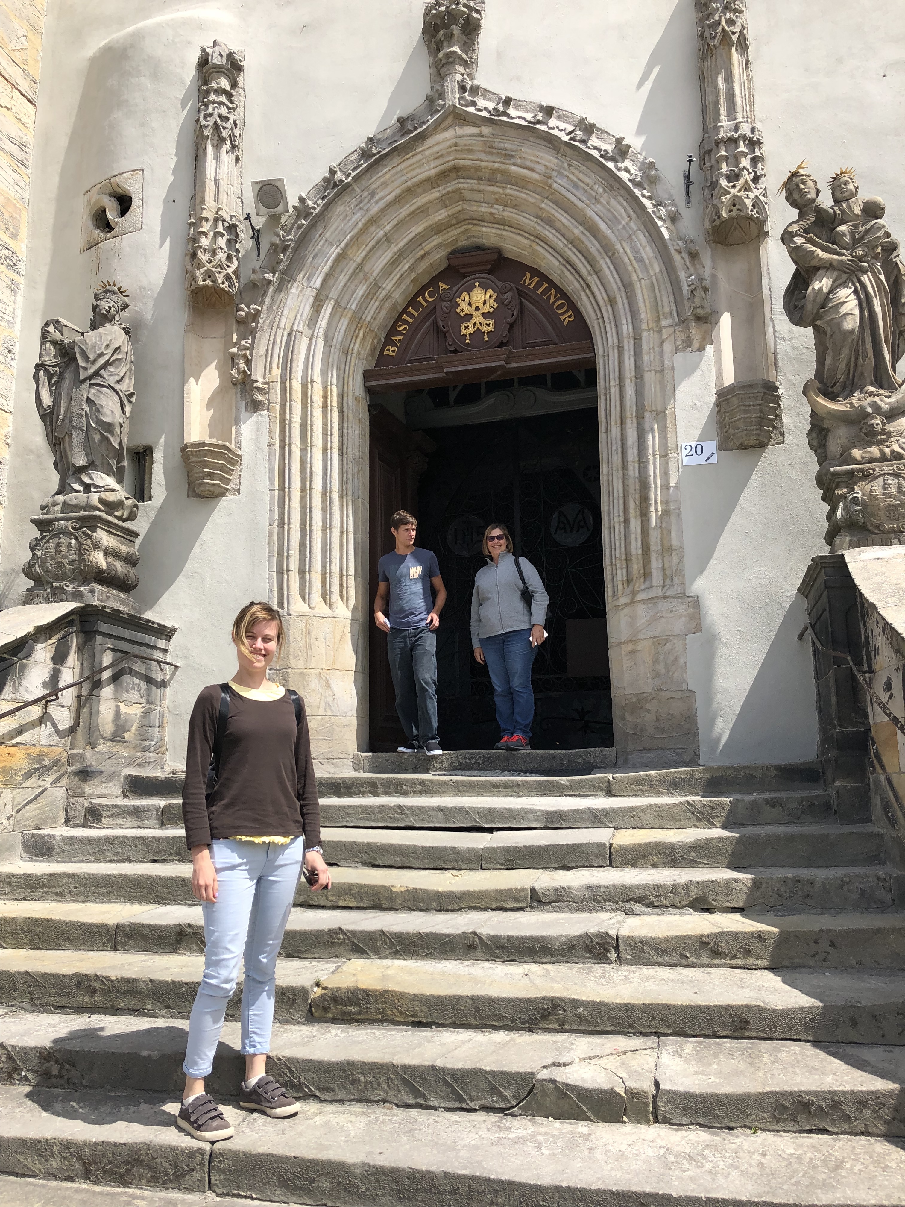 Nach Bunzlau (Bolesławiec) machten wir den ersten Abstecher von der Autobahn und dort gleich in praktisch das erste Verkaufshaus einer der vielen Porzellan Manufakturen dort. Noch Vormittag hatten wir den ersten Karton für Zuhause erstanden. Als ob wir nicht genug Gepäck fürs Camping gepackt hätten. Die Fülle und Schönheit des Porzellans hat uns alle mehr oder weniger begeistert. Ich glaube, Rike war eher mehr, während Detlev eher zum Weniger tendierte. Wir waren gleich angetan durch die Gastfreundlichkeit und Hilfsbereitschaft der Verkäufer, Touristen und sonstiger “Eingeborenen”. Verständigung war kein Problem. Die meisten, denen wir begegnet sind, konnten sich in English, Deutsch oder Zeichensprache verständlich machen. Wir haben uns auch gleich dran gemacht etwas Polnisch zu studieren. Rike zuerst und ich zuletzt, Angelika und Detlev immer dabei. Zum Schluß gings dann wenigstens mit: Dzień dobry (Guten Tag!) Dziekuje (Dankeschön!) & Do widzenia (Auf Wiedersehn). Erfreulich wars natürlich, wenn auf das freundliche Grüßen sofort die polnische Kaskade folgte, worauf ich aber immer etwas beschämt und doch beglückt dank der überzeugenden Ausprache hilflos die Schultern zucken und ins Deutsche zurück fallen musste: Ich weiß überhaupt nichts… Kirchen, Klöster und Pfarreien gab es zuhauf. Gutes Essen überall. Und das Wetter war wie gewohnt mit unserer Angelika: “wie wenn Engel reisen.” Kein Wunder fühlten wir uns auf der gesammten Strecke pudelwohl und wie Zuhause. Schließlich sind unsere Vorfahren in diesen Landstrichen auch mal Zuhause gewesen bzw durchgezogen auf ihren/unseren endlosen Wanderung in der Diaspora.