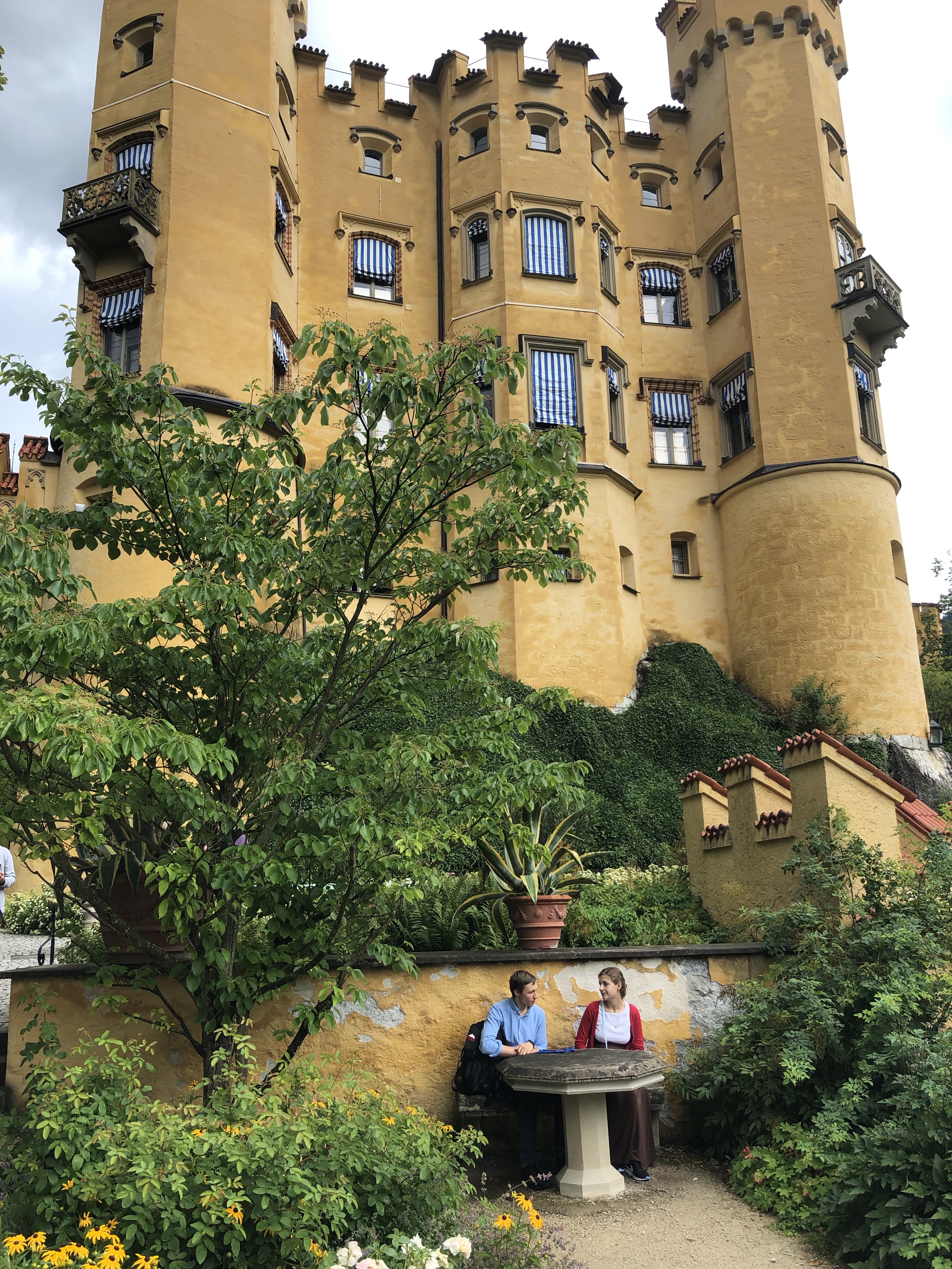 Friederike ist umgezogen und wir haben sie besucht. Sie hat uns ihre Arbeitswelt gezeigt und wir sind mit ihr nach Füssen, Opas Lieblingsort. Mit meinem Vater bin ich dort auch schon mal gewesen. Anläßlich eines Pfarrkonventes des Sprengels Süd sind wir mit der Tegelbergbahn auf die Berggipfel gefahren und haben von dort das Schloß Neuschwanstein bewundert. Dichter ran an die sagenhafte Kulisse für die Wagner Kompositionen kam ich damals nicht. Dieses Mal sind wir bei herrlichem Wetter mit “durchdringendem Regen” (Unser täglich Gebet!) in den Märchenschlössern von König Ludwig II gewesen und haben in der hübschen Kleinstadt am See übernachtet. Eindrücklich und sagenhaft diese schöne Bergwelt!