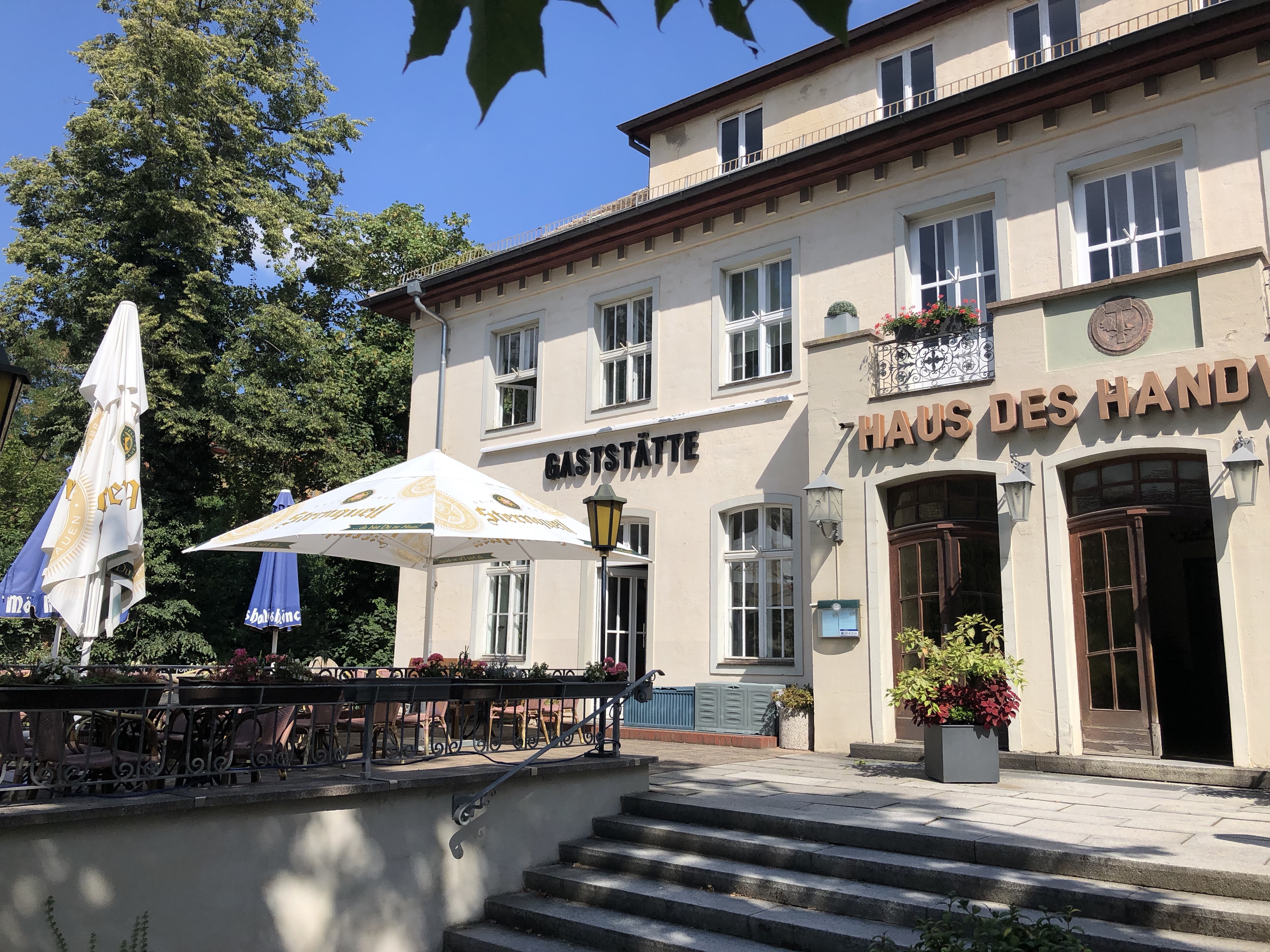“Haus des Handwerks” is literally translated “home of trade” – and was constructed after the 2nd World War, when the head forester (Oberförster) Dr. Heckert failed to defend his villa “Diana” against the invading Russians. These were not impressed and flattened his home. The local trade unions cooperated and opened up their new location as a house of culture “Hans Sachs.”