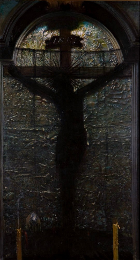Da überantwortete er ihnen Jesus, dass er gekreuzigt würde. Sie nahmen ihn aber, 17 und er trug selber das Kreuz und ging hinaus zur Stätte, die da heißt Schädelstätte, auf Hebräisch Golgatha. 18 Dort kreuzigten sie ihn und mit ihm zwei andere zu beiden Seiten, Jesus aber in der Mitte. 19 Pilatus aber schrieb eine Aufschrift und setzte sie auf das Kreuz; und es war geschrieben: Jesus von Nazareth, der Juden König. 20 Diese Aufschrift lasen viele Juden, denn die Stätte, wo Jesus gekreuzigt wurde, war nahe bei der Stadt. Und es war geschrieben in hebräischer, lateinischer und griechischer Sprache. 21 Da sprachen die Hohenpriester der Juden zu Pilatus: Schreibe nicht: Der Juden König, sondern dass er gesagt hat: Ich bin der Juden König. 22 Pilatus antwortete: Was ich geschrieben habe, das habe ich geschrieben. 23 Die Soldaten aber, da sie Jesus gekreuzigt hatten, nahmen seine Kleider und machten vier Teile, für jeden Soldaten einen Teil, dazu auch den Rock. Der aber war ungenäht, von oben an gewebt in einem Stück. 24 Da sprachen sie untereinander: Lasst uns den nicht zerteilen, sondern darum losen, wem er gehören soll. So sollte die Schrift erfüllt werden, die sagt: »Sie haben meine Kleider unter sich geteilt und haben über mein Gewand das Los geworfen.« Das taten die Soldaten. 25 Es standen aber bei dem Kreuz Jesu seine Mutter und seiner Mutter Schwester, Maria, die Frau des Klopas, und Maria Magdalena. 26 Als nun Jesus seine Mutter sah und bei ihr den Jünger, den er lieb hatte, spricht er zu seiner Mutter: Frau, siehe, das ist dein Sohn! 27 Danach spricht er zu dem Jünger: Siehe, das ist deine Mutter! Und von der Stunde an nahm sie der Jünger zu sich. 28 Danach, als Jesus wusste, dass schon alles vollbracht war, spricht er, damit die Schrift erfüllt würde: Mich dürstet. 29 Da stand ein Gefäß voll Essig. Sie aber füllten einen Schwamm mit Essig und legten ihn um einen Ysop und hielten ihm den an den Mund. 30 Da nun Jesus den Essig genommen hatte, sprach er: Es ist vollbracht. Und neigte das Haupt und verschied
