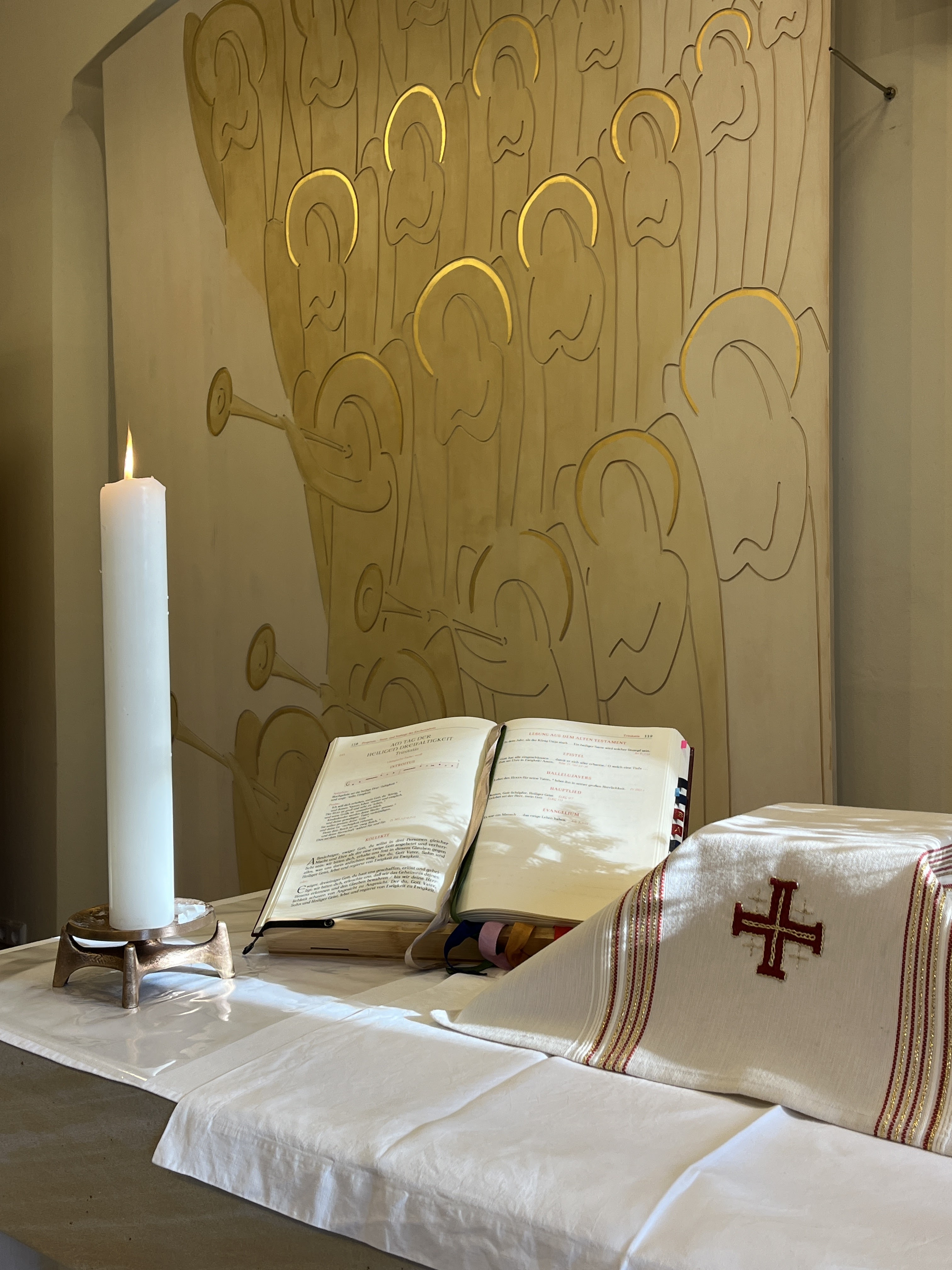 Heiliger Gott, Du hast uns erwählt, ehe der Welt Grund gelegt war, Du hast uns erlöst durch das Blut Deines Sohnes und hast uns wissen lassen das Geheimnis Deines Willens, Du hast uns den Geist der Kindschaft gegeben und hast Deine Gemeinde zum Leib gemacht, dessen Haupt Jesus Christus ist. Wir beten Dich an!