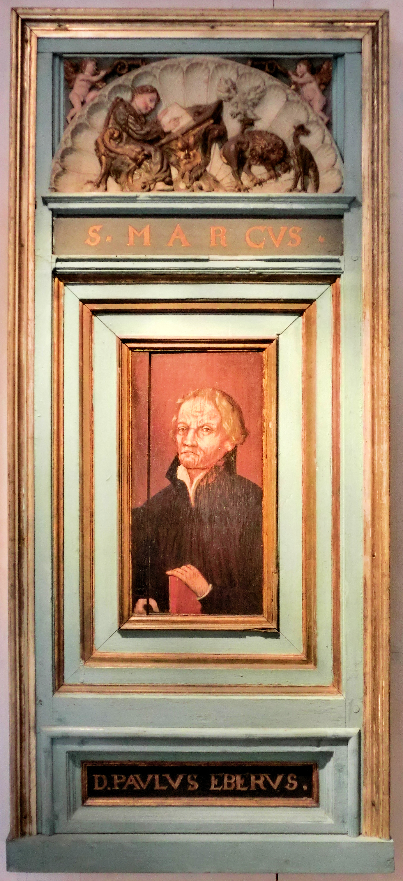 “These two bible verses are a summary of the core message of biblical quotations painted on the building facade in black letters in 1565 by Anthonius Lange. In 1702 new plaster was applied and covered this writing. It is still unclear who selected the texts, which describe Christ as the source of wisdom and point to the responsibility of education that be deduced from Scriptures: Elector August, Heilinger, Cranach, Eber or his colleagues at the Leucorea or other intellectuals from the Wittenberg book trade. Thankfully, the inscriptions, lost in 1702, were preserved by Balthasar Menz and Gottfried Suevus and can partly be found in the commemorate publication of 1888, printed on the occasion of the new Melanchthon-Gymnasium´s inauguration.” (Dr. Insa Christiane Hennen: “The School Building in Wittenberg in the years 1564 to 1567” translated by Vivian Kleeblatt, 2021. Pg.32f.) To date I have not found a picture of that mayor Thomas Heiliger.