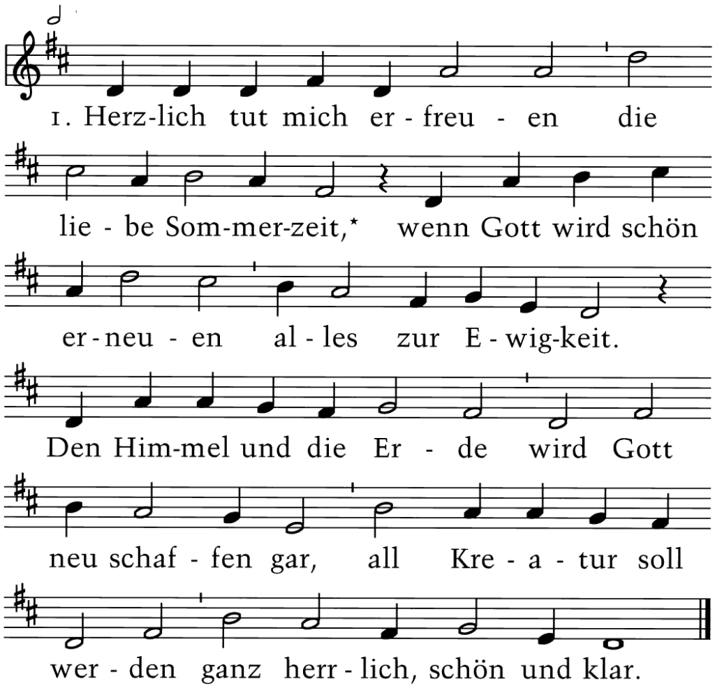 2. Kein Zung kann je erreichen die ewig Schönheit groß; man kann’s mit nichts vergleichen, die Wort sind viel zu bloß. Drum müssen wir solchs sparen bis an den Jüngsten Tag; dann wollen wir erfahren, was Gott ist und vermag.