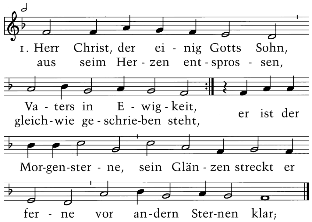 für uns ein Mensch geboren im letzten Teil der Zeit, der Mutter umverloren ihr jungfräulich Keuschheit, den Tod für uns zerbrochen, den Himmel aufgeschlossen, das Leben wiederbracht: