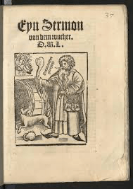 Hie fahren sie denn aber daher und sagen: Die Kirchen und Geistlichen thun das, und habens Macht, dieweil solches Geld zu Gottesdienst gelangt. Fürwahr hat man keine andre Sache, den Wucher zu rechtfertigen, so ist er nie übler gescholten; denn er will je die unschuldige Kirche und Geistlichkeit mit ihm zum Teufel führen, und in die Sünde ziehen. Thu den Namen der Kirche ab, und sprich: Es thuts der wuchersüchtige Geiz, oder der Faulenzer alter Adam, der nicht gern arbeitet um sein Brod zu erwerben, daß er seinem Müßiggang unter der Kirchen Namen einen Deckel mache.