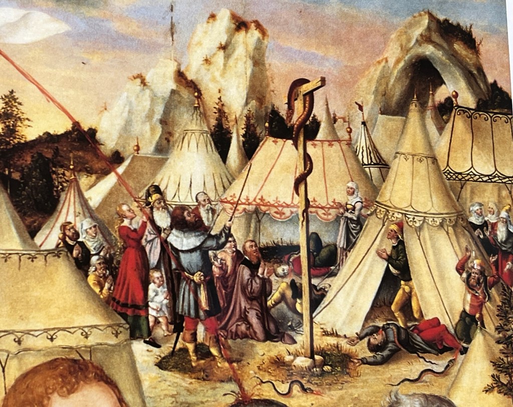 Just as Moses lifted up the serpent in the wilderness, so must the Son of Man be lifted up, so that everyone who believes in him may have eternal life.