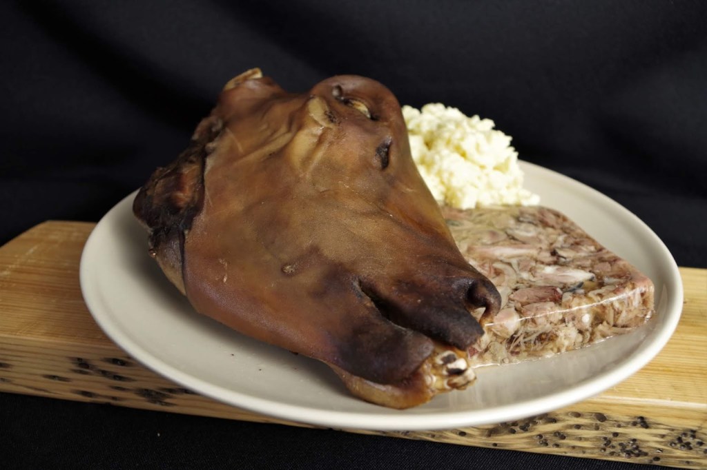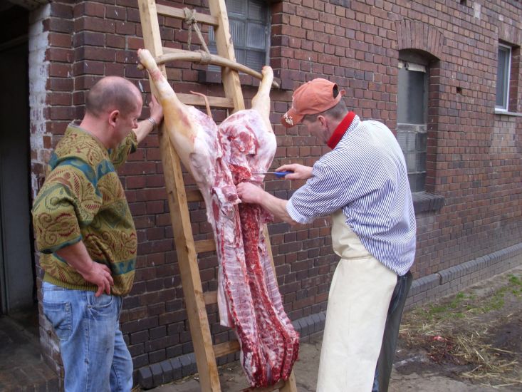 Well, wherever home slaughter is practiced, you get leftovers galore. Lots goes into sausages. Some into the popular “Saumagen” (Sow´s belly), which chancellor Kohl deemed a delicacy. He offered Lady Thatcher some. It got him in her bad books forever. All the off cuts, the bits and pieces, which do not make the grade of choice grade land in the big pot for “Sülze” or “Presskopf” (Brawn or black pudding). The leftovers.