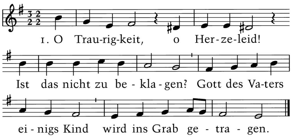 O Traurigkeit, o Herzeleid! Ist das nicht zu beklagen? Gott des Vaters einigs Kind wird ins Grab getragen.