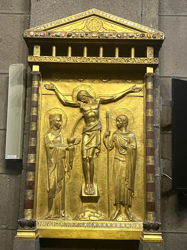 Und an Jesum Christum, seinen einigen Sohn, unsern Herrn, der empfangen ist von dem Heiligen Geist, geboren aus Maria der Jungfrau, gelitten unter Pontius Pilatus, gekreuzigt, gestorben und begraben, niedergefahren zur Hölle, am dritten Tage wieder auferstanden von den Toten, aufgefahren gen Himmel; sitzend zur Rechten Gottes, des allmächtigen Vaters; von dannen er kommen wird zu richten die Lebendigen und die Toten.