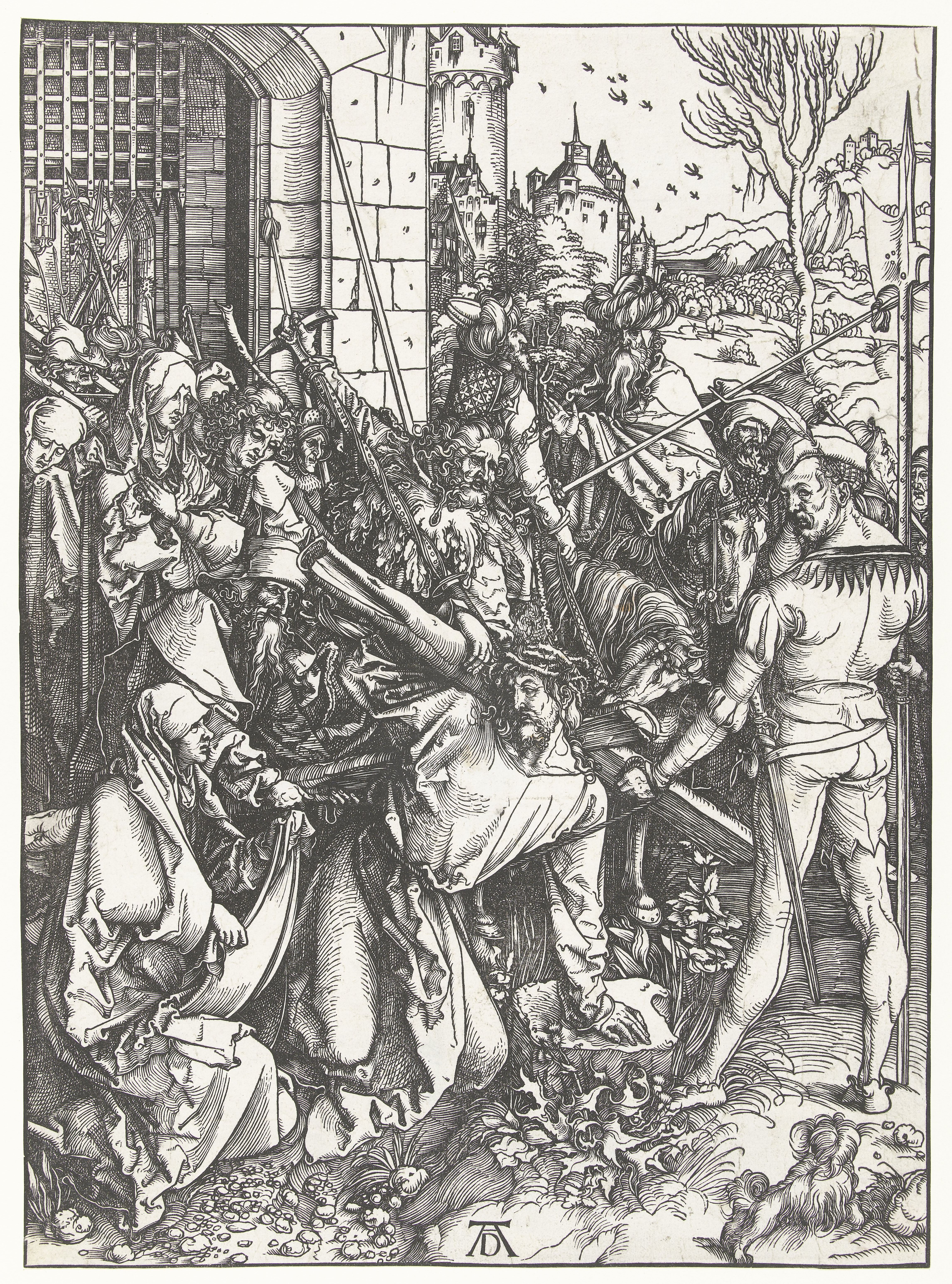 Wie man den Herren Christum ausführet, Simon jm das Creutz nachtregt, und die weyber, so mit gehen, weynen.