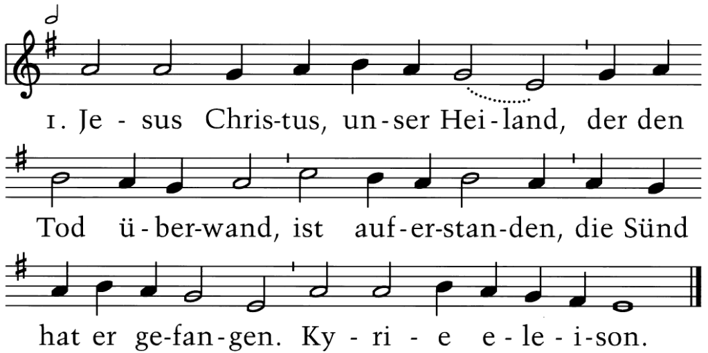 Jesus Christus, unser Heiland, der den Tod überwand, ist auferstanden, die Sünd hat er gefangen. Kyrie eleison.