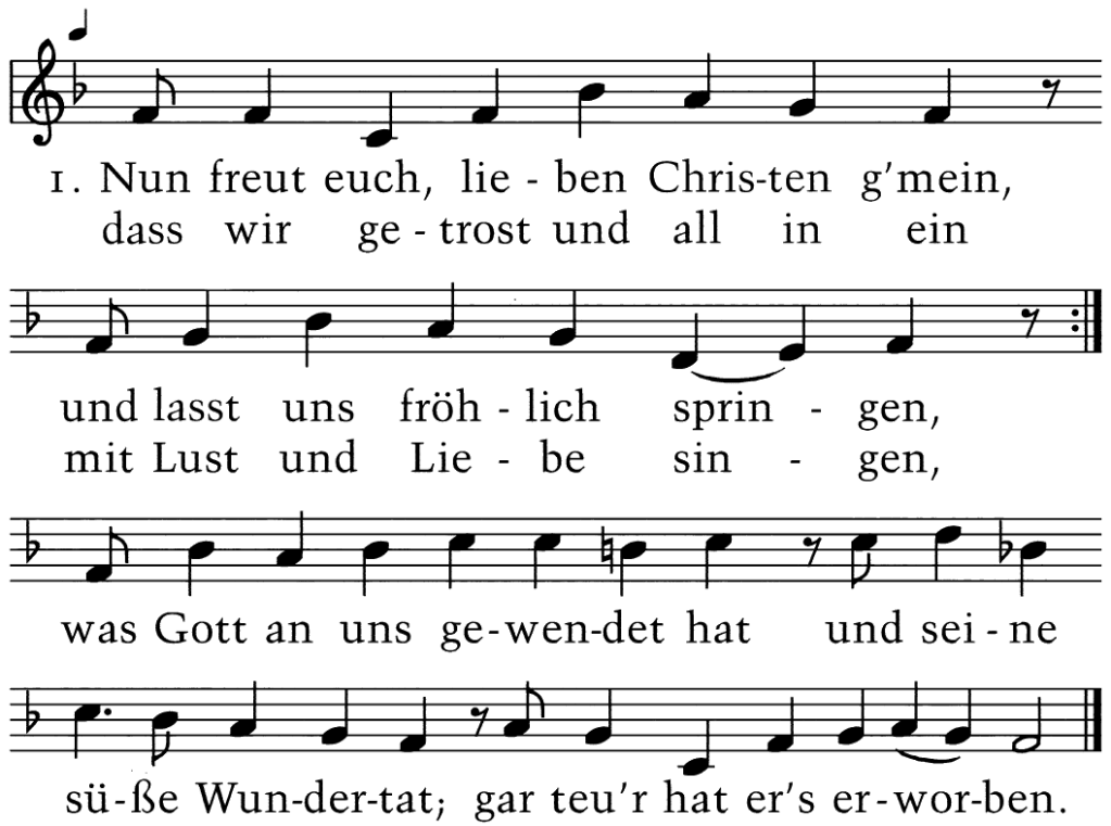Nun freut euch, lieben Christen g’mein, und lasst uns fröhlich springen, dass wir getrost und all in ein