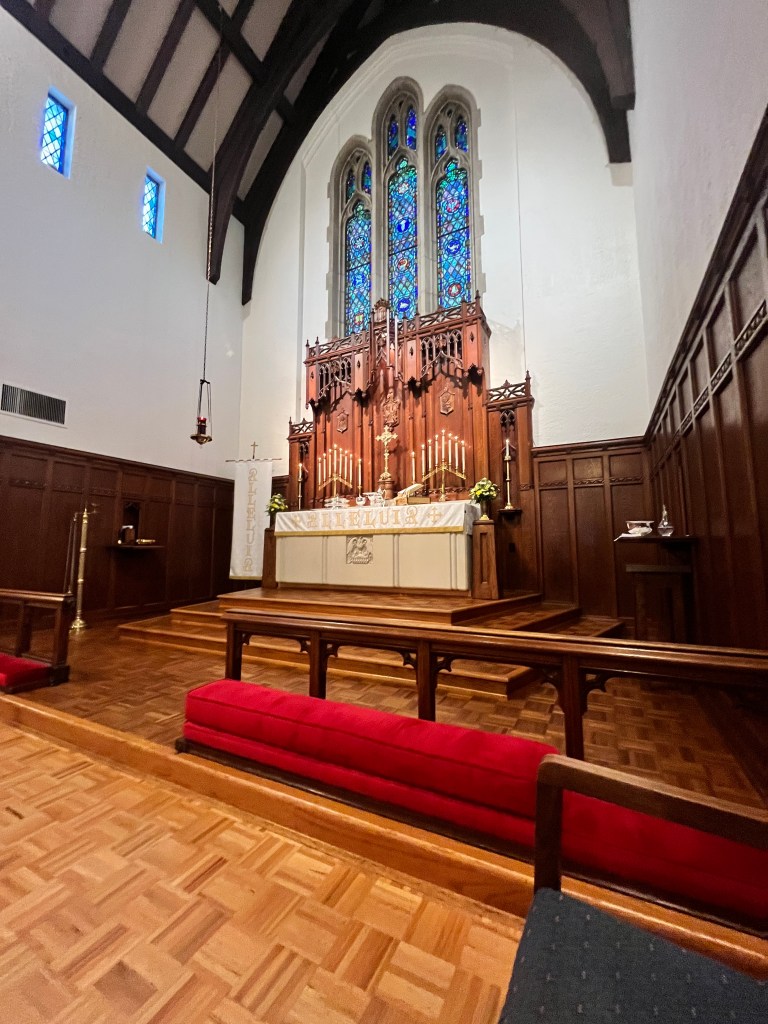 Ich glaube an den Heiligen Geist, eine heilige christliche Kirche, die Gemeinde der Heiligen, Vergebung der Sünden, Auferstehung des Fleisches und ein ewiges Leben. Amen.