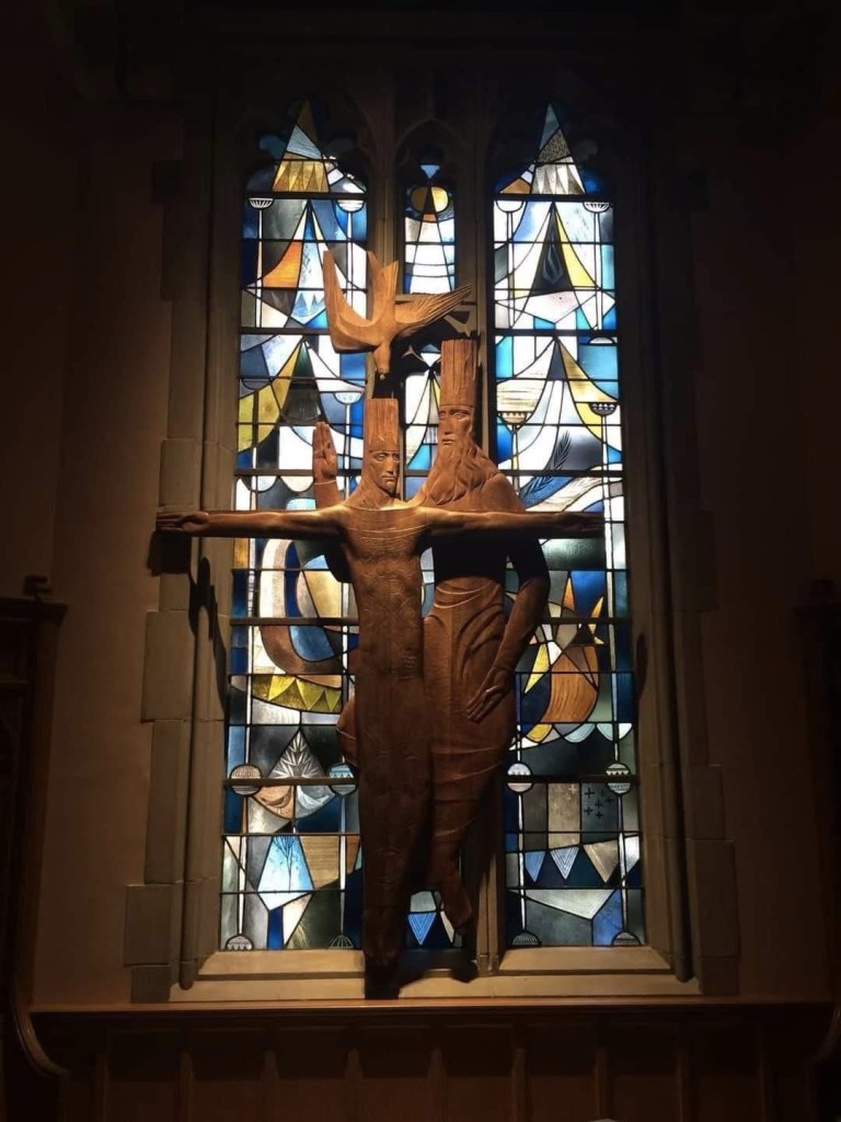 Ich glaube an den Heiligen Geist, eine heilige christliche Kirche, die Gemeinde der Heiligen, Vergebung der Sünden, Auferstehung des Fleisches und ein ewiges Leben. Amen.