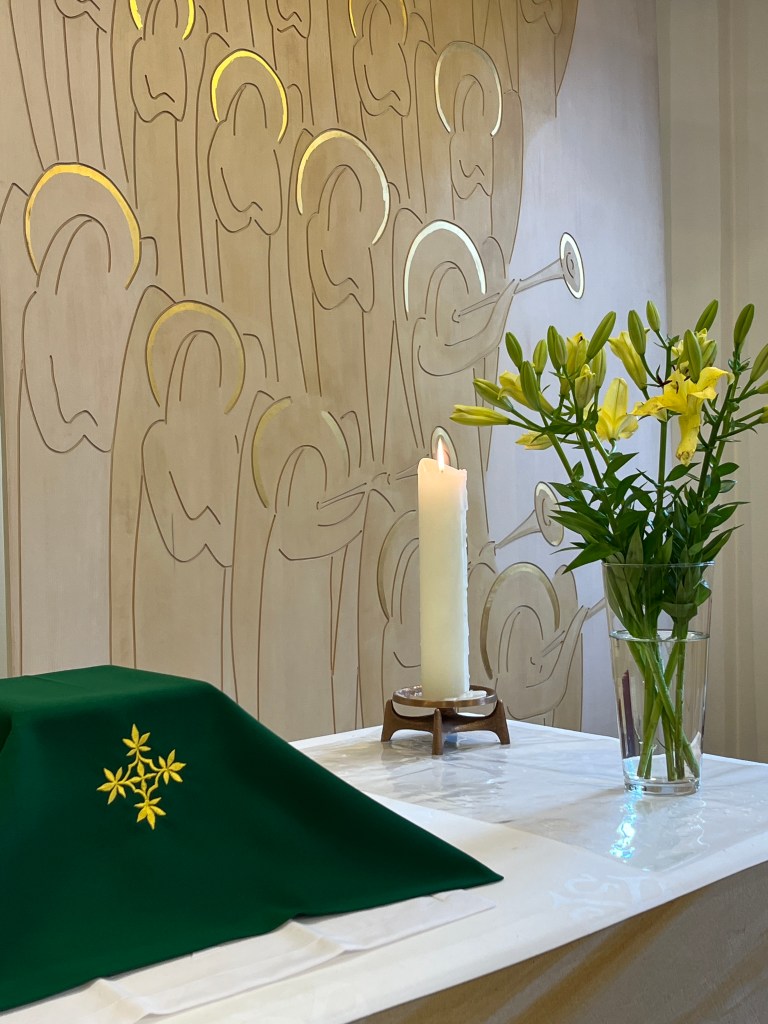 Ich glaube an den Heiligen Geist, eine heilige christliche Kirche, die Gemeinde der Heiligen, Vergebung der Sünden, Auferstehung des Fleisches und ein ewiges Leben. Amen.