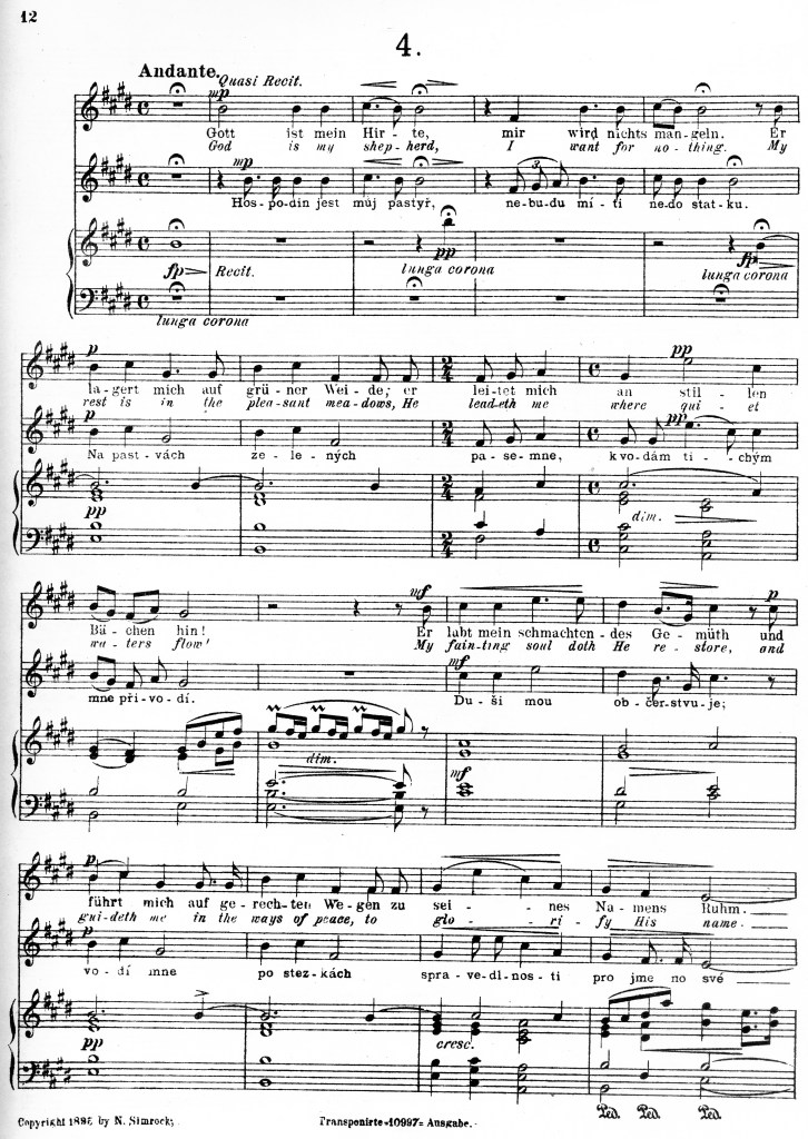 Der HERR ist mein Hirte, mir wird nichts mangeln. Er weidet mich auf einer grünen Aue und führet mich zum frischen Wasser. Er erquicket meine Seele. Er führet mich auf rechter Straße um seines Namens willen.