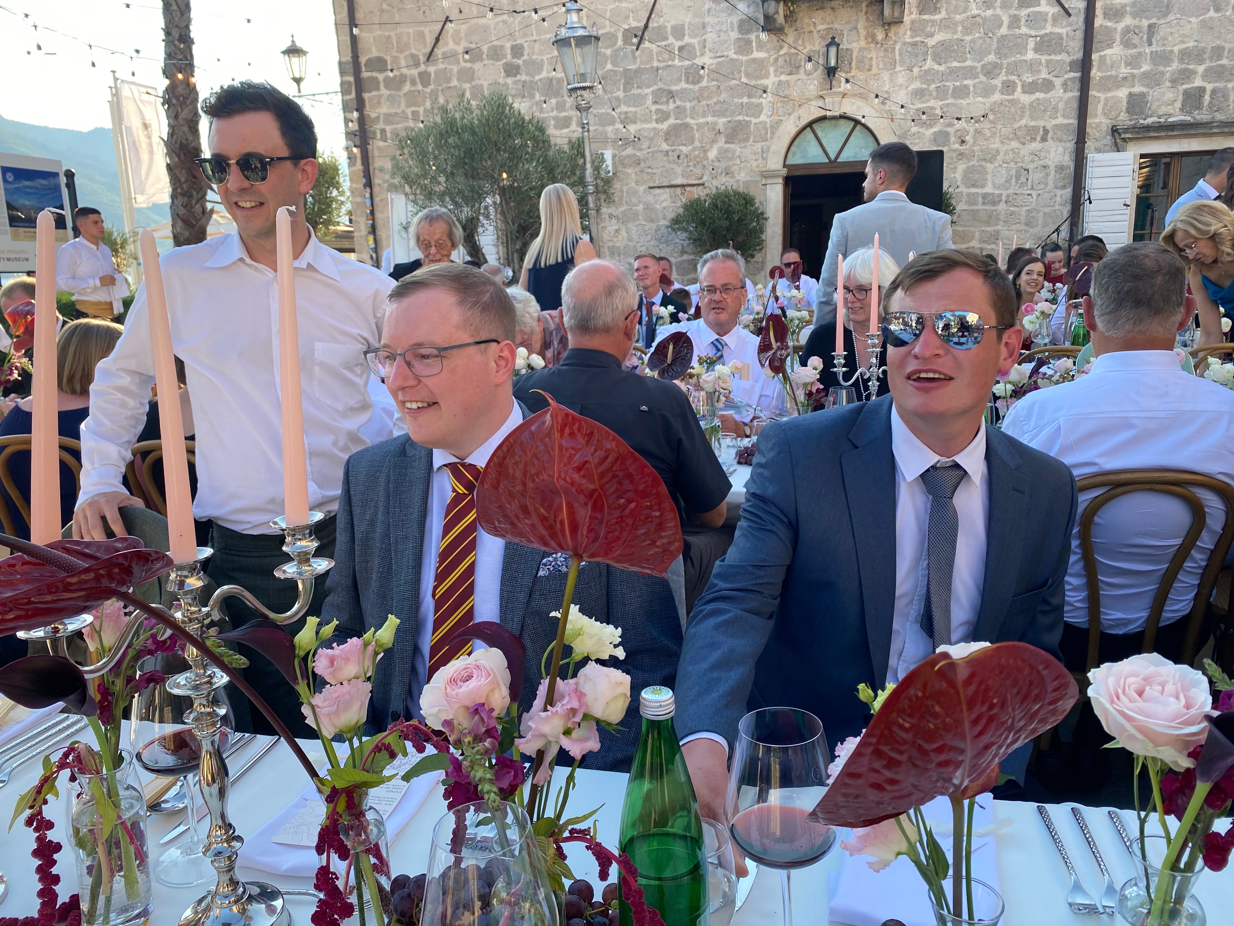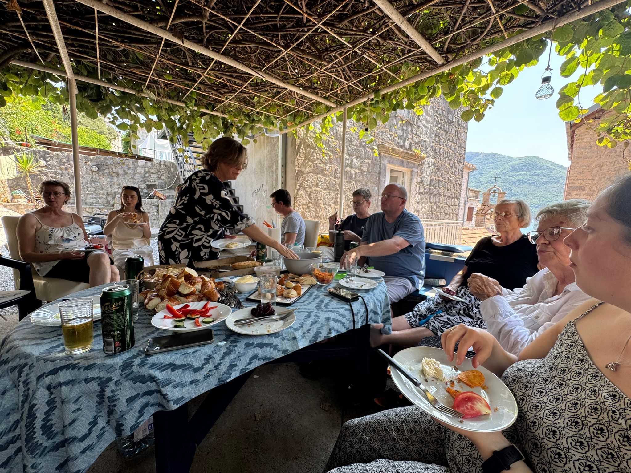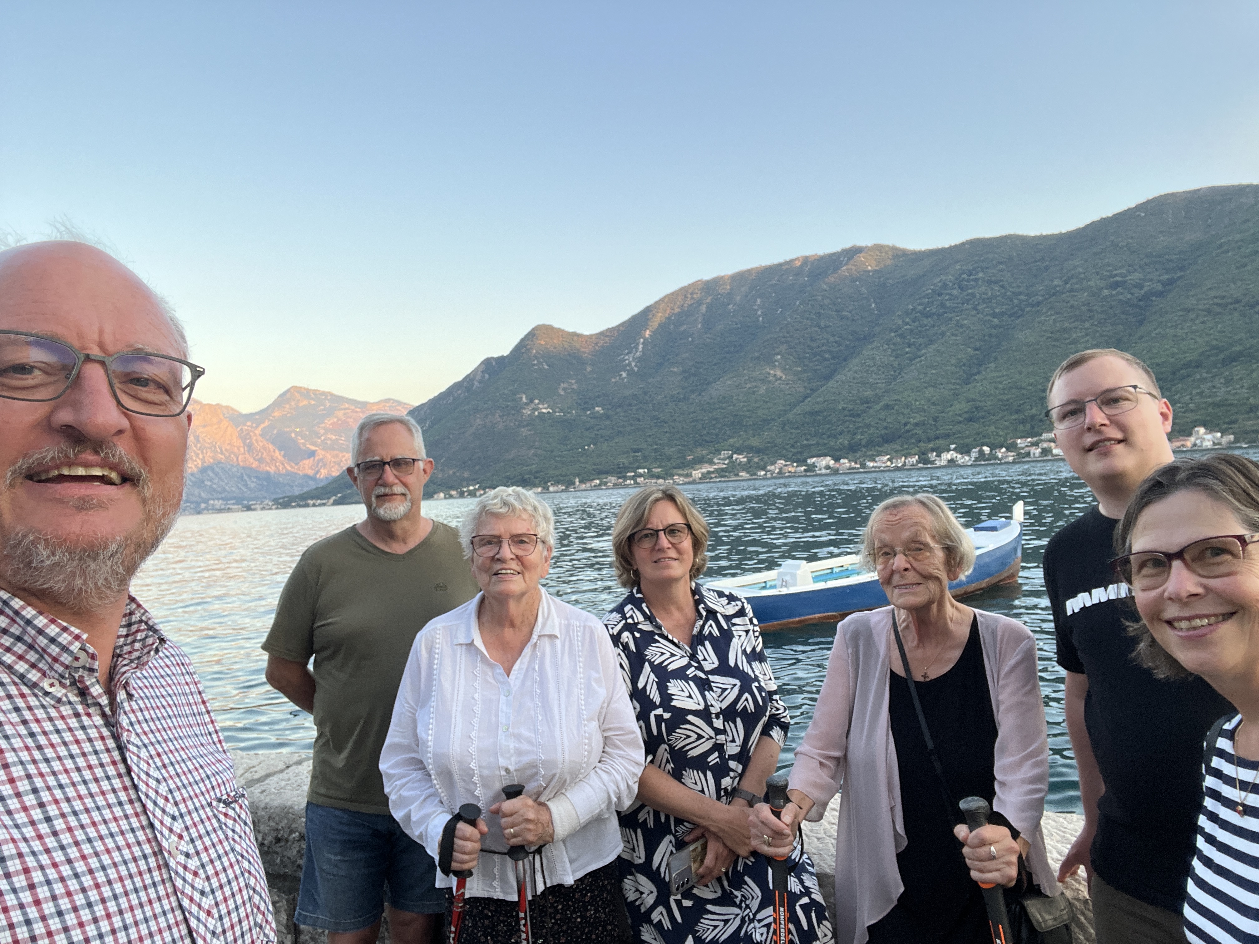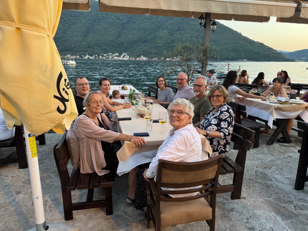 Im August haben unsere Kinder – Detlev und Biljana – in Perast (Montenegro) geheiratet. Das war ein Familienfest. Aus aller Welt waren die Gäste herbeigeflogen. Wir genossen herrliche Tage an der Küstenlandschaft in dem altertümlichen Dorf an der Bucht von Kotor (Adria). Eine Bilderbuchhochzeit. Unsere Schwiegertochter hatte alles tiptop organisiert – aus der Ferne und trotz vollzeit Beschäftigung als Prof für BCMS. Daß meine Mutter mit ihrer Schwester Bärbel dabei sein konnte, war „nog ´n tjerrie on top“.