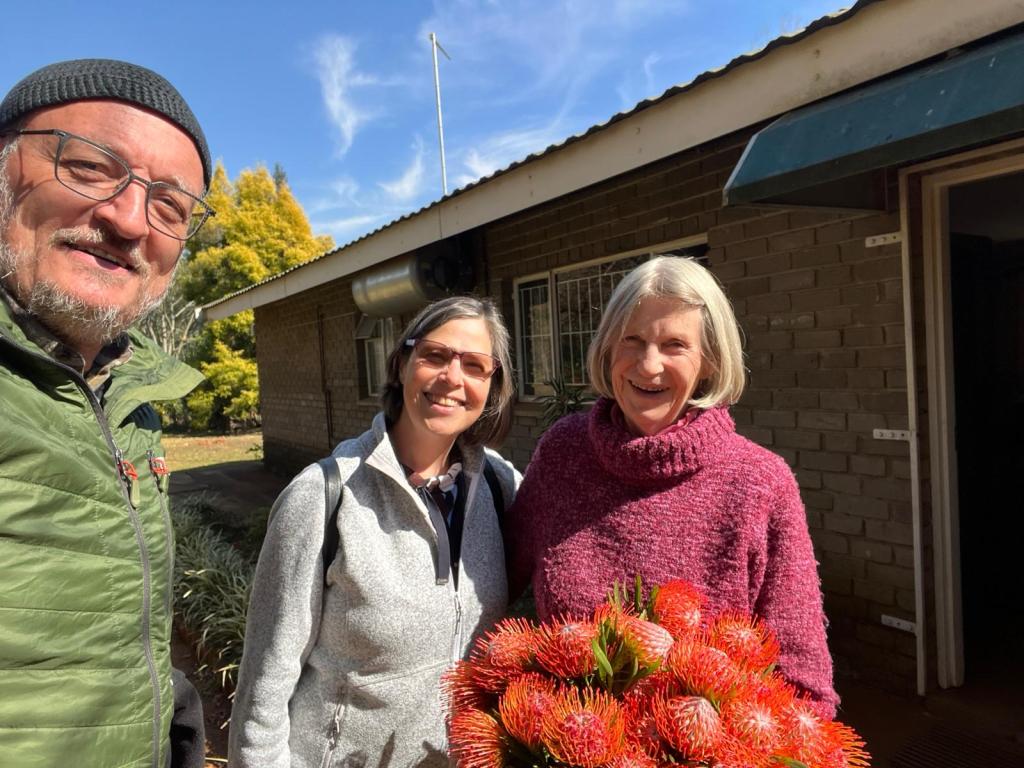 Im Sommer war Robert Kolb mit Pauline zu einem weiteren Arbeitseinsatz an der Reformationsgeschichtlichen Forschungsbibliothek bei uns untergekommen. Darum waren wir frei, um an der Scharlachschen Familienfeier anläßlich des 100. Geburtstags meines Schwiegervaters auf der Wild Farm von Täuber teilzunehmen. So haben wir noch einen Winter erlebt. Es war bloody kalt. Das fing in Pretoria an, wo wir unseren alten Freund Heinrich Voges (98) erleben konnten. Zum Glück hat Nichte Cornelia in Durban geheiratet. Dort ist es zu der Jahreszeit erträglich.