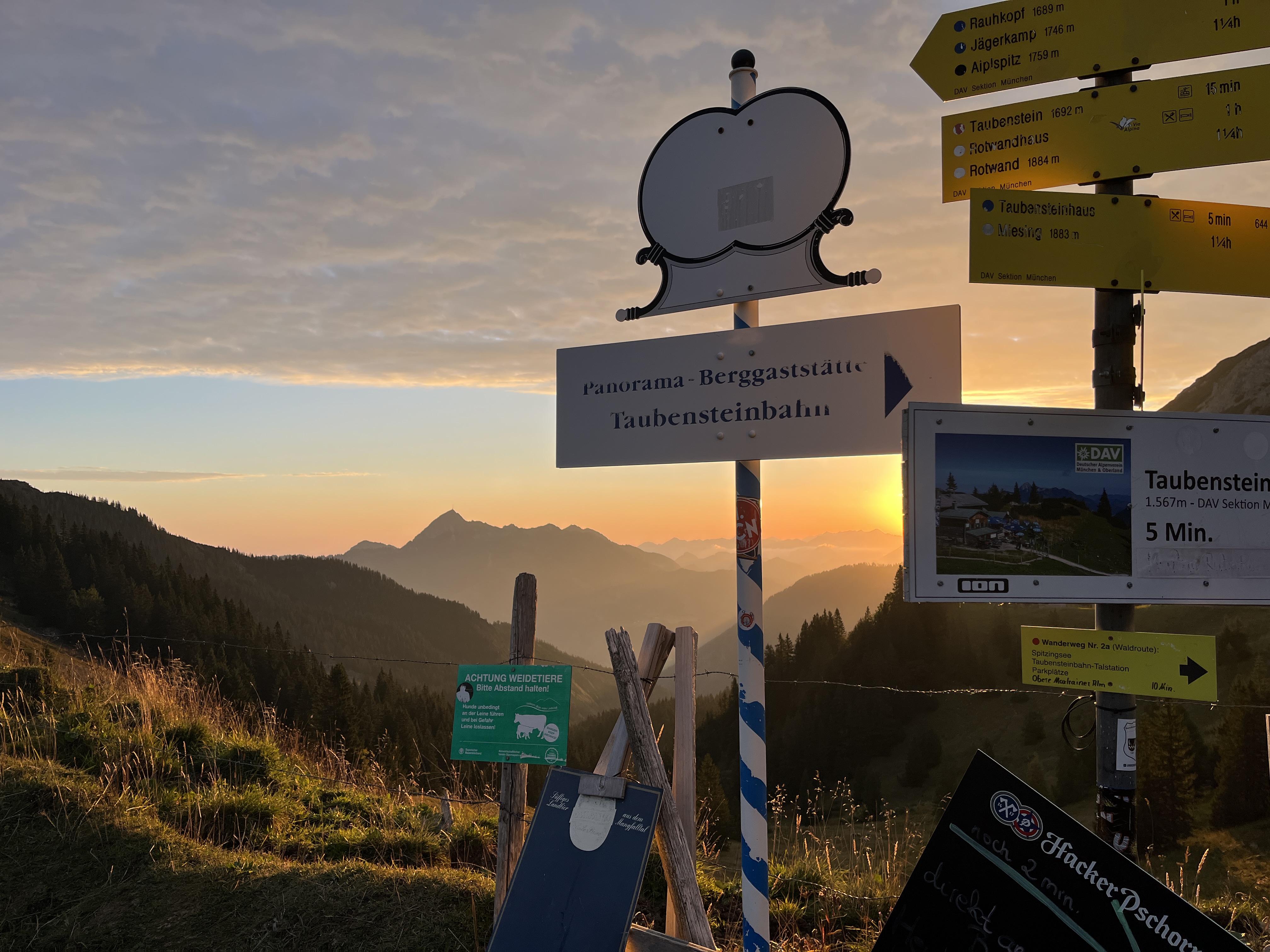 Ganz anders war dann meine Solo-Wanderung durch die bayrischen Hausberge. Da gings auch hoch hinaus, aber allein und mit Comfort auf Sparflamme. Mein Stammtischkumpel Dietmar L. hatte uns eine Tour von Geitau zum Taubensteinhaus zur Guffert- und Tegernseerhütte und schließlich über Lenggries nach München und heimwärts geplant. Leider hatte er sich in der vorherigen Woche beim Holzzerkleinern mit der Kreissäge in die Hand geschnitten. Da gings für ihn nicht mehr in die Berge und ich bin allein losgezogen. Mit der Bahn bis Geitau und dann auf Schusters Rappen weiter. Das war ein Erlebnis. Hoffentlich kann ich das bald wieder machen.