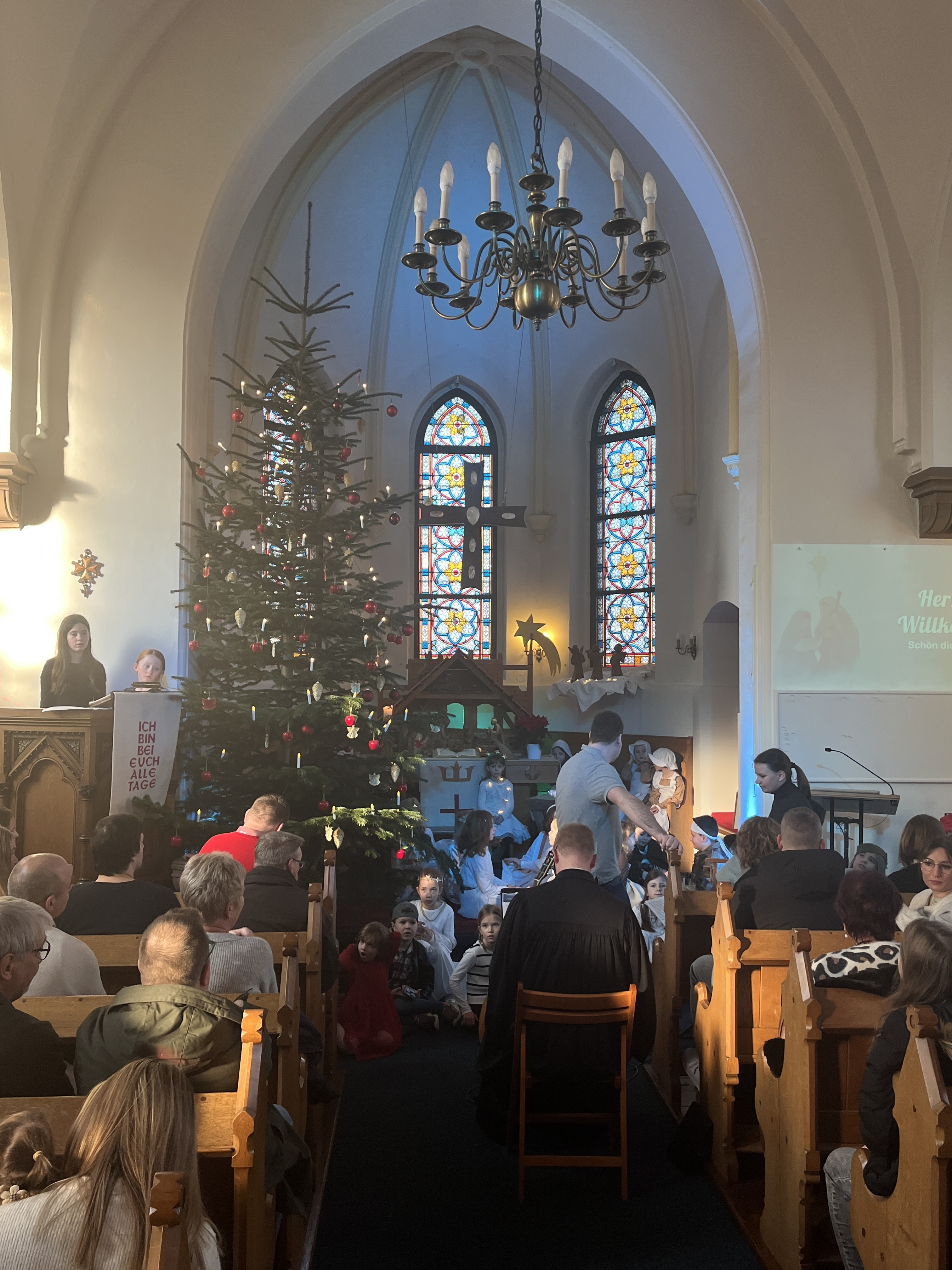 Des ewgen Vaters einig Kind jetzt man in der Krippen find’t; in unser armes Fleisch und Blut verkleidet sich das ewig Gut. Kyrieleis.