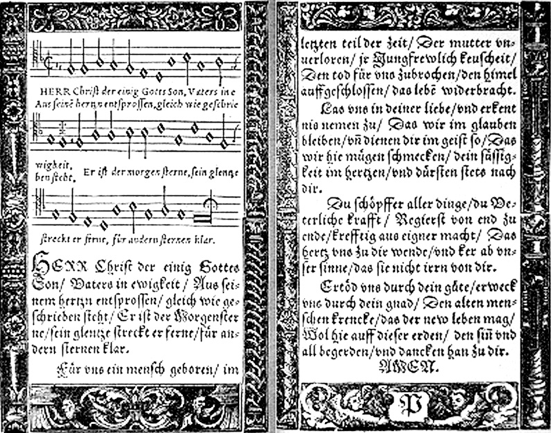 Herr Christ, der einig Gotts Sohn, Vaters in Ewigkeit, aus seim Herzen entsprossen, gleichwie geschrieben steht, er ist der Morgensterne, sein Glänzen streckt er ferne vor andern Sternen klar;