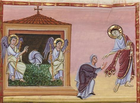 Am ersten Tag der Woche kommt Maria Magdalena früh, als es noch finster war, zum Grab und sieht, daß der Stein vom Grab weggenommen war. Da läuft sie und kommt zu Simon Petrus und zu dem andern Jünger, den Jesus lieb hatte, und spricht zu ihnen: Sie haben den Herrn weggenommen aus dem Grab, und wir wissen nicht, wo sie ihn hingelegt haben.