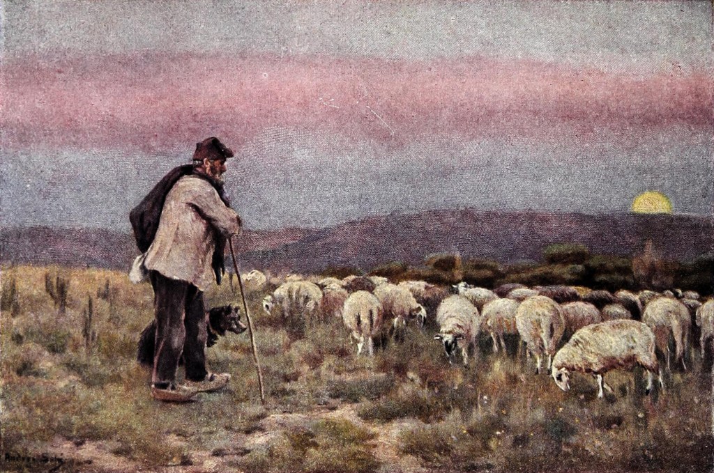 Wahrlich, wahrlich, ich sage euch: Wer nicht zur Tür hineingeht in den Schafstall, sondern steigt anderswo hinein, der ist ein Dieb und ein Räuber. Der aber zur Tür hineingeht, der ist der Hirte der Schafe. Dem macht der Türhüter auf, und die Schafe hören seine Stimme; und er ruft seine Schafe mit Namen und führt sie hinaus. Wenn er alle seine Schafe hinausgelassen hat, geht er vor ihnen her, und die Schafe folgen ihm nach; denn sie kennen seine Stimme. Einem Fremden aber folgen sie nicht nach, sondern fliehen vor ihm; denn sie kennen die Stimme der Fremden nicht.