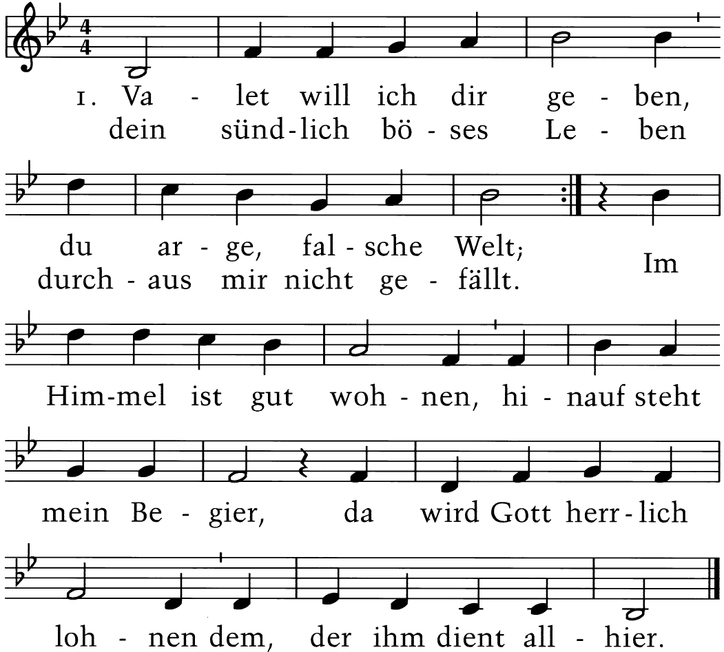 O weh dem Menschen, welcher hat des Herren Wort verachtet und nur auf Erden früh und spat nach großem Gut getrachtet! Er wird fürwahr gar schlecht bestehn und mit dem Satan müssen gehn von Christus in die Hölle.