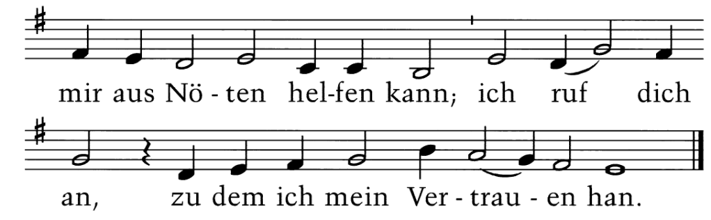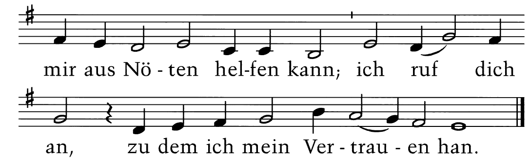 Ich hab erhoben zu Dir hoch droben all meine Sinnen; laß mein Beginnen ohn allen Anstoß und glücklich ergehn. Laster und Schande, des Satanas Bande, Fallen und Tücke treib ferne zurücke; laß mich auf Deinen Geboten bestehn.