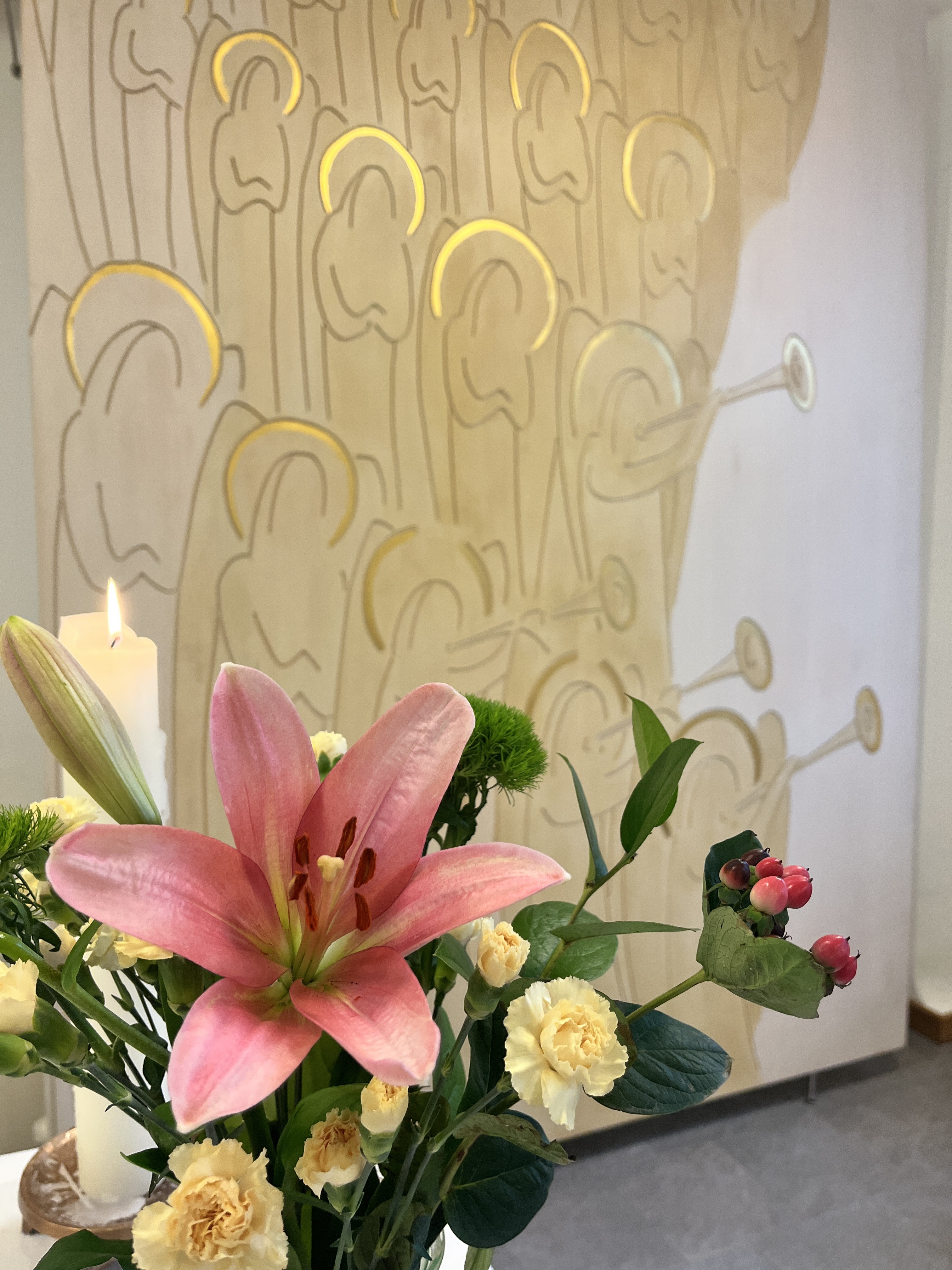 Ich glaube an den Heiligen Geist, eine heilige christliche Kirche, die Gemeinde der Heiligen, Vergebung der Sünden, Auferstehung des Fleisches und ein ewiges Leben. Amen.