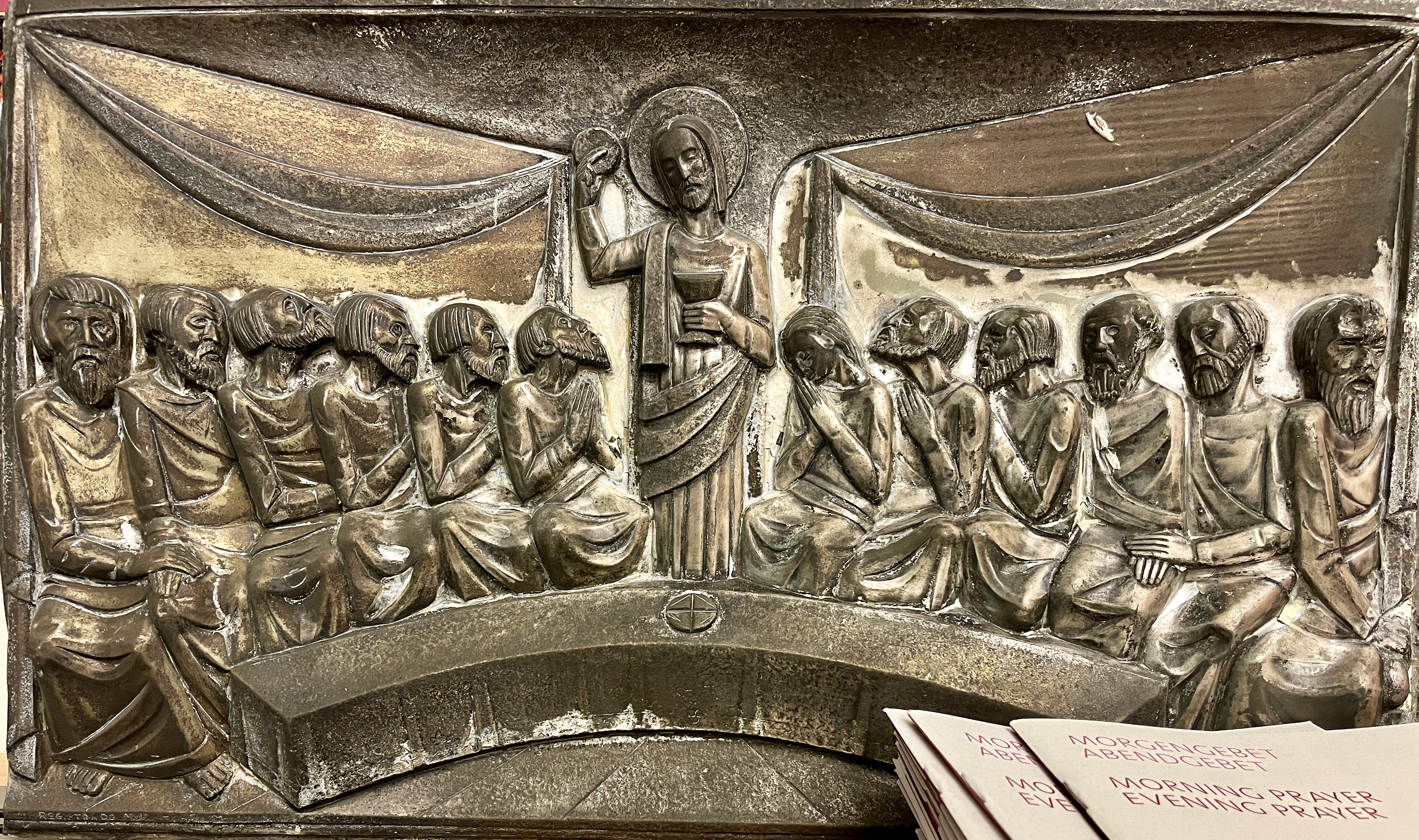 Ich glaube an den Heiligen Geist, eine heilige christliche Kirche, die Gemeinde der Heiligen, Vergebung der Sünden, Auferstehung des Fleisches und ein ewiges Leben. Amen.